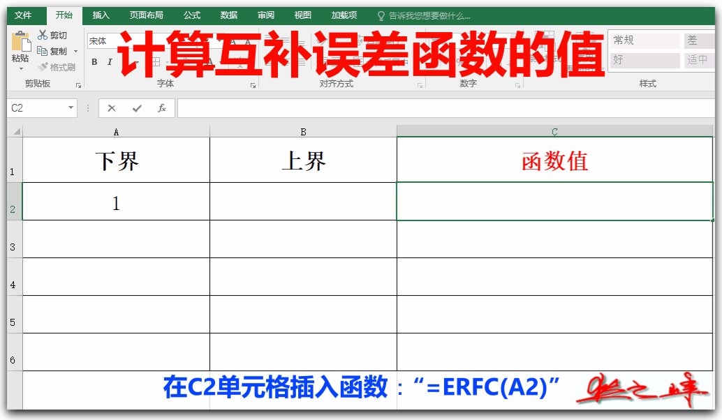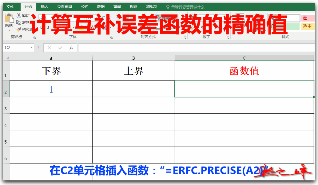 语法是:“=ERFC(x)”。