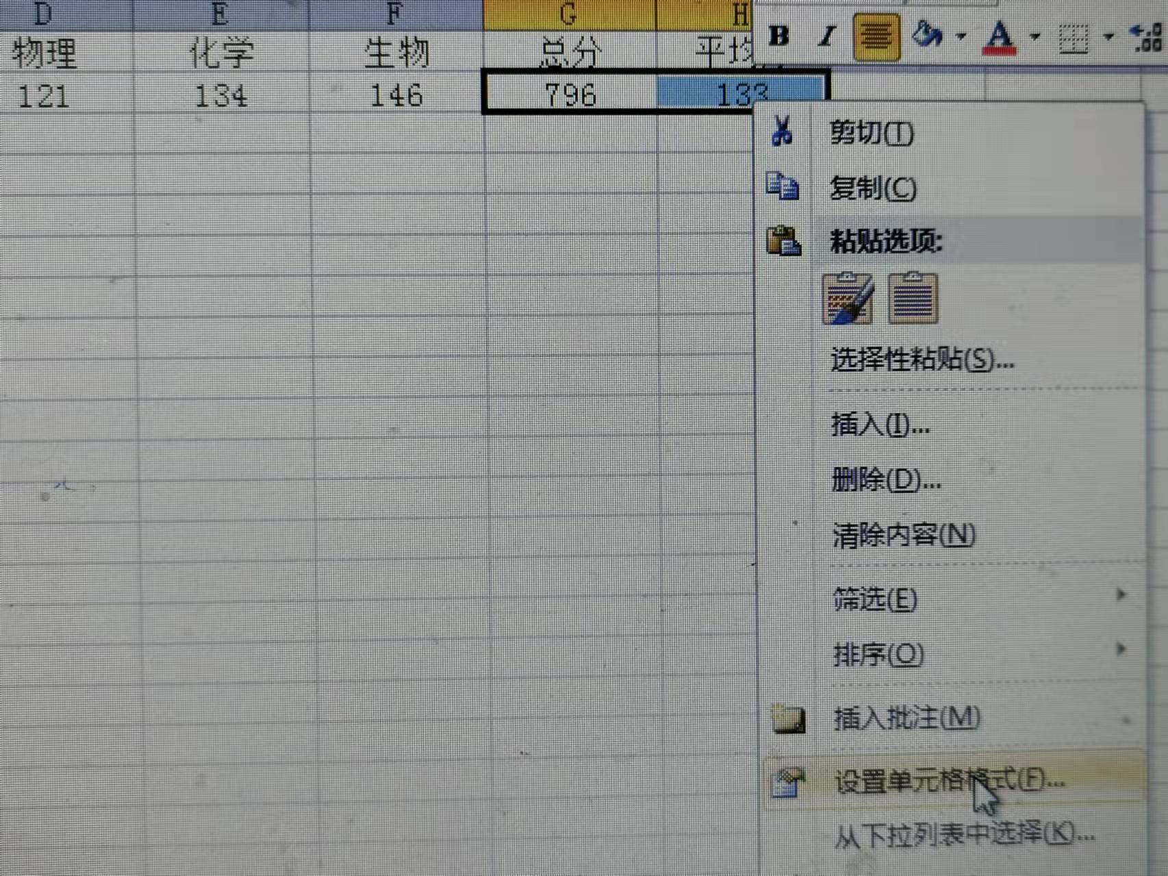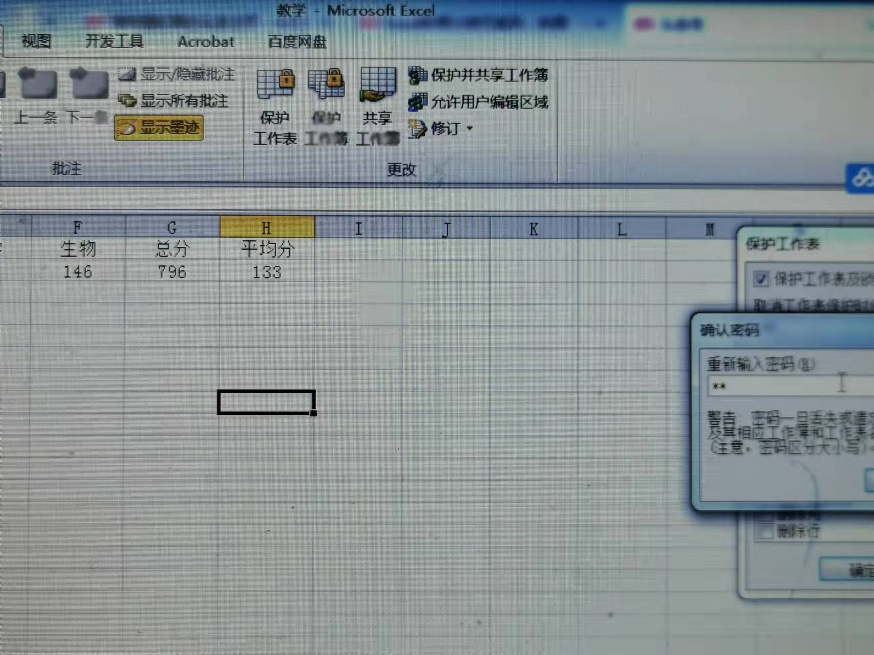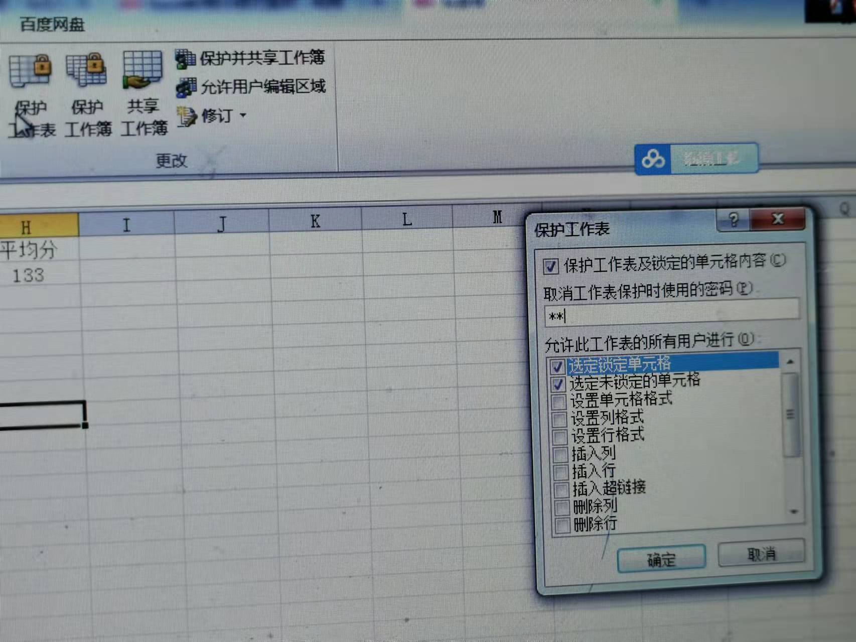 1、一起选中总分和平均分,右键,选择“设置单元格格式”,在弹窗中选择“保护”,再在“锁定”和“隐藏”前划√,然后确定