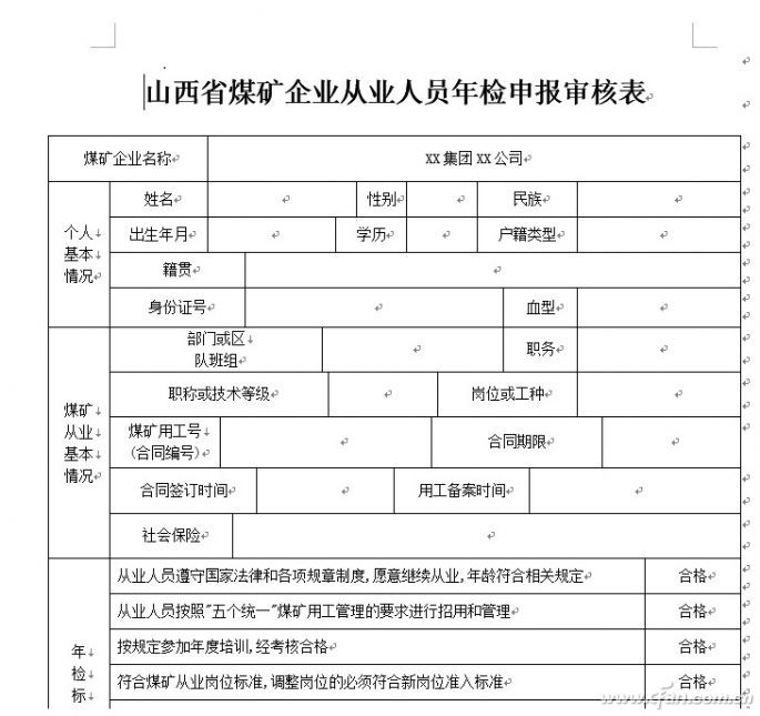 首先新建Word表或文档,并放到一个文件夹中。这里以填“从业人员年检申报审核表”为例(图1),并放入名为“年检”的文件夹中。然后在年检软件中,将全部信息导出一张Excel表,并命名“年检申报表”存入“年检”文件夹中。