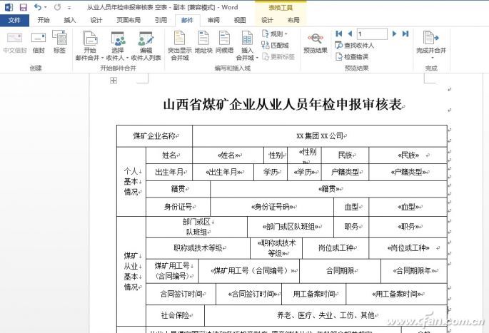 笔者所在公司现有2100多人,将年检申报审核表全部打印出来,需要专人耗费十天左右时间,而现在只需半天的时间就可以完成了,工作效率得到了极大的提高。并且还留有电子格式的文档,便于查找、更改、携带、传送和保存。这种方法可以广泛地应用到有基础数据的各个部门,如果灵活应用将会有更广阔用途。