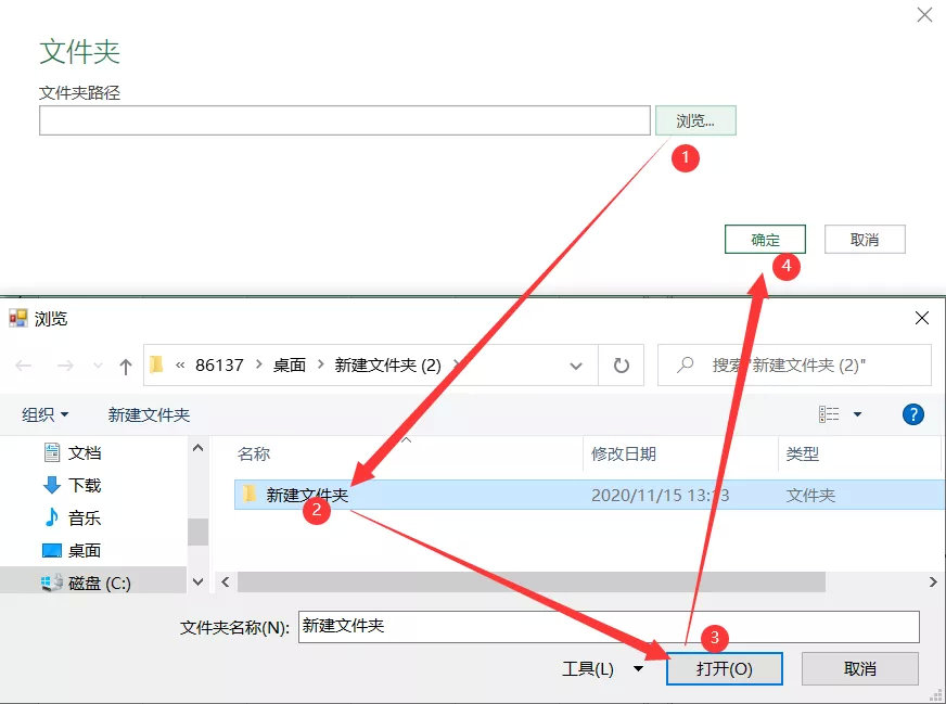 ❸ 点击【浏览】,选择表格所在的文件夹-【打开】。
