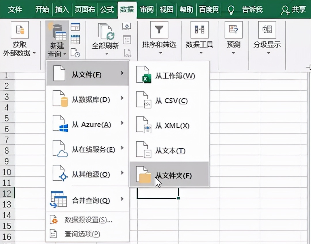 ❷ 点击【数据】选项卡-【新建查询】-【从文件】-【从文件夹】。