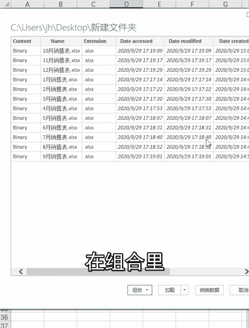 ❹ 点击【组合】-【合并和加载】-选中【sheet1】-【确定】,表格就都合并好啦~