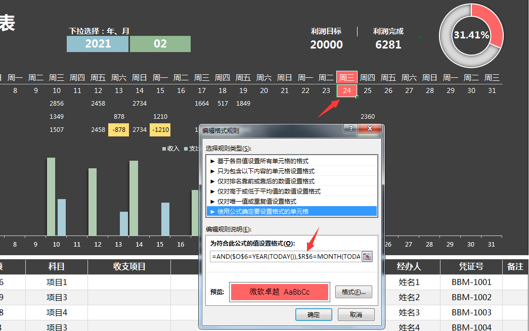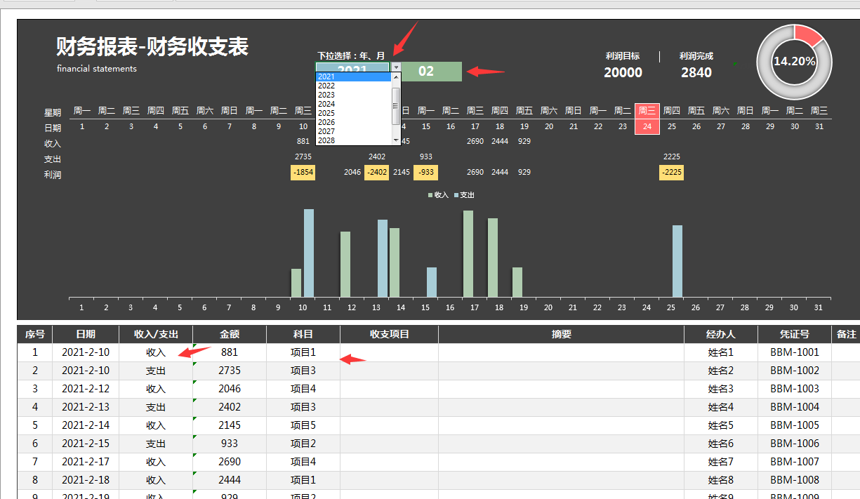 メ年份,月份,以及下方表格部分的项目列等,均可下拉菜单选择数据。メ