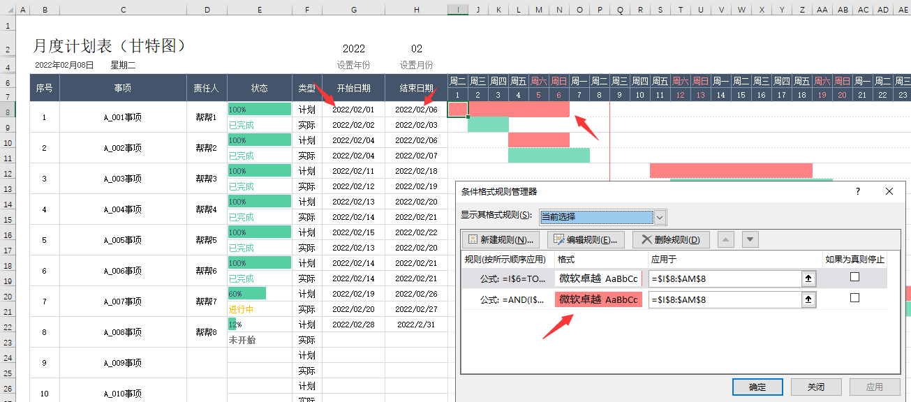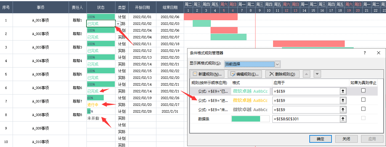 メ输入开始时间,结束时间,Excel条件格式进度条显示,方便轻松。メ