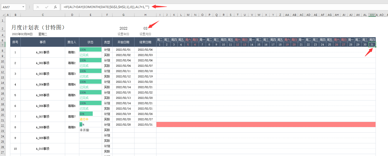 メ日期行不要改动,函数自动变化,不要改动单元格函数。メ