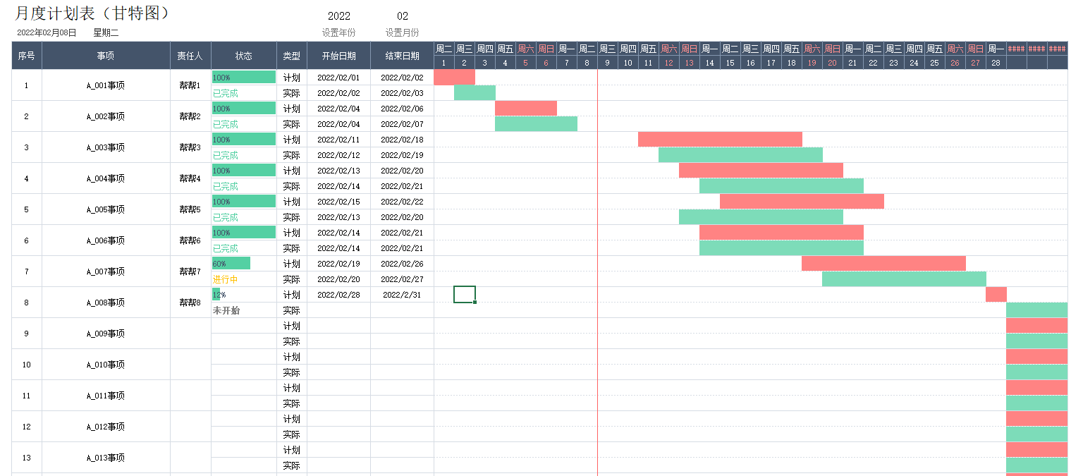 Hello大家好,我是帮帮。今天跟大家分享一张Excel月度甘特图计划表,图形图表模板,工作进度高效展示。
