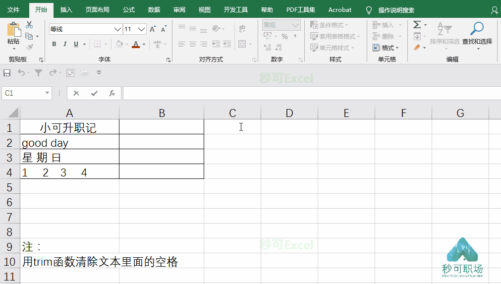 TRIM函数的核心作用是将单元格内的数字前的空格去掉。