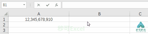 如下GIF,在只需要在B1单元格输入=CLEAN(A1)即可去掉数据间的逗号。