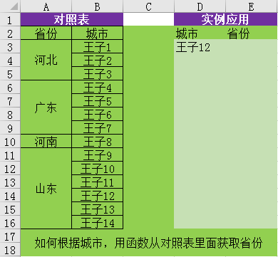 - 一看到根据城市查找省份,很多人第一印象就是用vlookup函数,是的,如果省份不在合并单元格,用这个函数,是最简单的,可是因为省份合并了,就有难度了