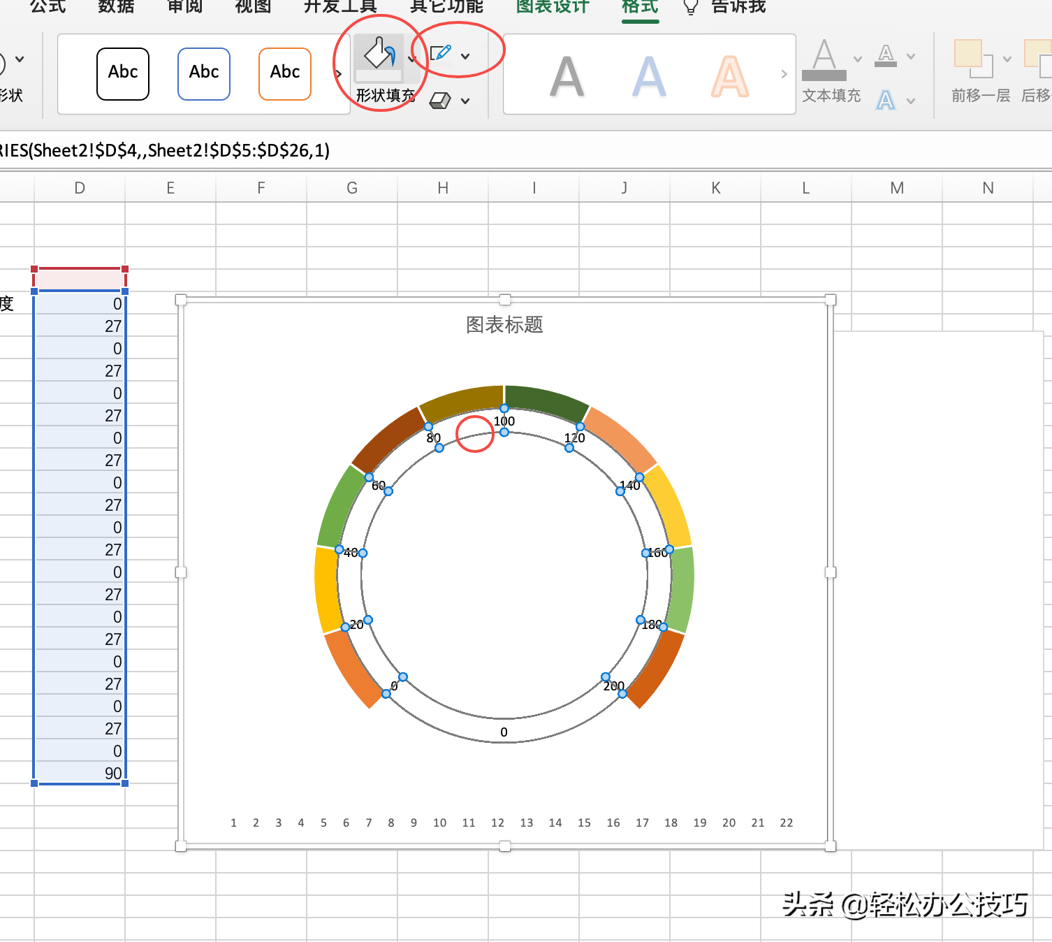 调整圆环颜色,将预留出的90度角设置为:无颜色填充/无轮廓
