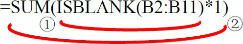 ②对B2:B11单元格区域中的非空值个数进行求和。