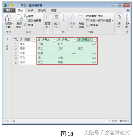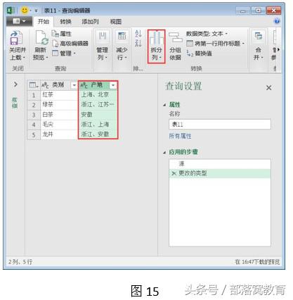 第三步:选中表格中多重数据的区域,如,“产地”列,单击“拆分列”按钮,如下图所示。