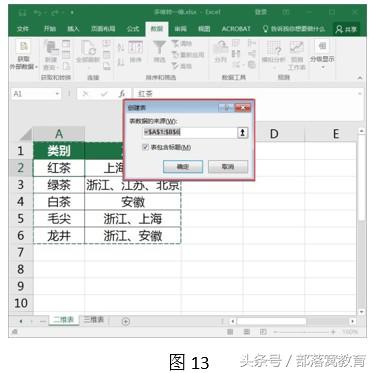 Excel将自动选择表格区域。然后选中“表包含标题”复选框,单击“确定”按钮,如下所示。