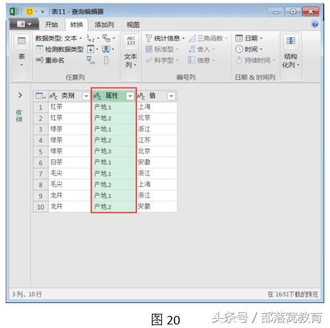 第七步:选择“转换”选项卡,单击“逆透视其他列”按钮。