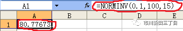 1、 在Excel中输入NORMINV(10%,100,15),结果约等于80.78,该结果意味着小于等于80.78的智商值在全部智商值中为最低的10%;