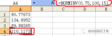 ·对于底部25%,需要在Excel中输入NORMINV(25%,100,15),结果等于89.88;