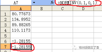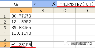 NORMINV(正态分布的概率值,0,1)= NORMSINV(正态分布的概率值)