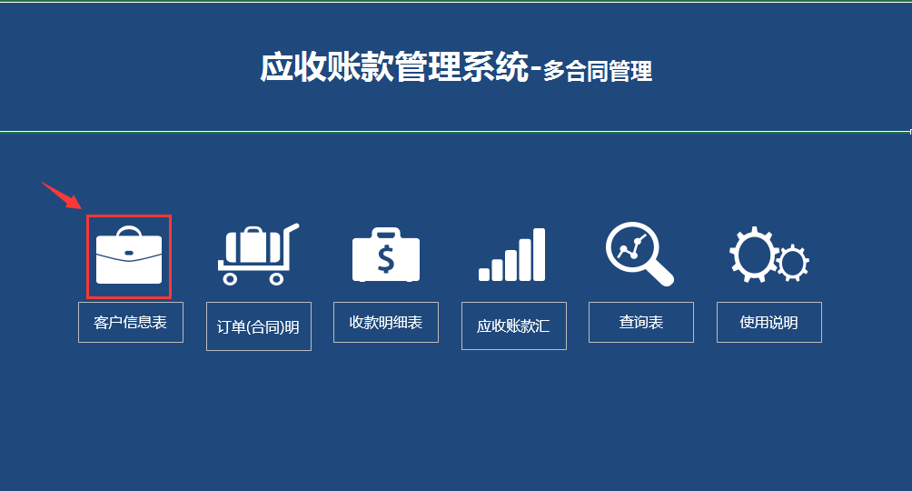 大家请看范例图片。点击首页图标,超链接到管理表格区域。