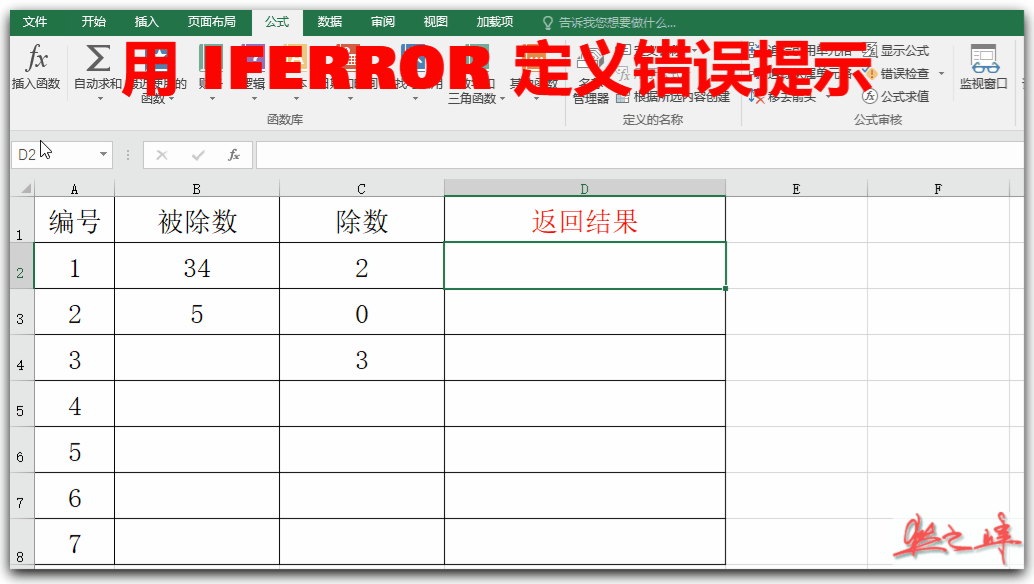 操作:在“返回结果”栏(单元格D列)输入函数:=IFERROR(B2/C2,"有错误")。