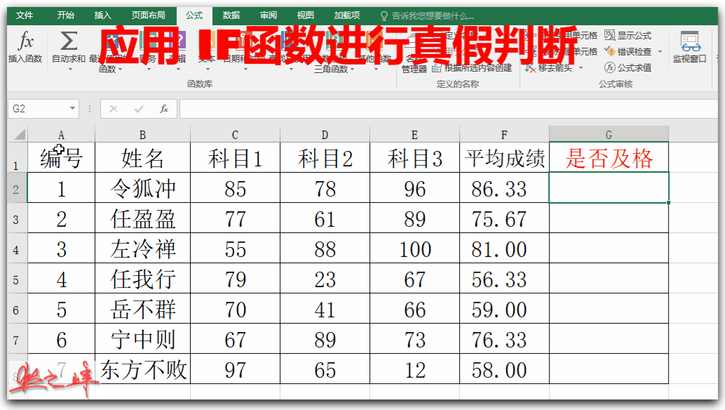 操作:在“是否及格”栏(单元格G列)输入函数:=IF(F2>60,"及格","不及格")。