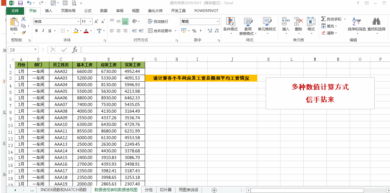 操作步骤:选择数据区域—插入—数据透视表—数据报表布局