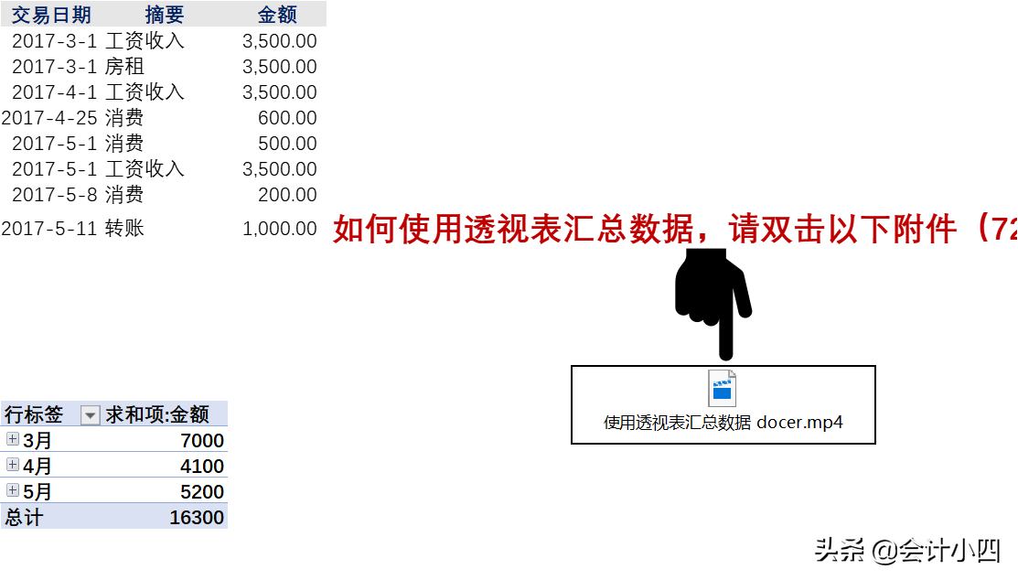老板们经常喜欢看汇总数据,比如:小王啊,今年每个月发了多少工资统计出来我看看,小王啊,把后半年这几个,每个月招待费花了多少给我统计出来看看,等等的,一个透视表汇总,交大家完美解决。(同样有视频教程。)