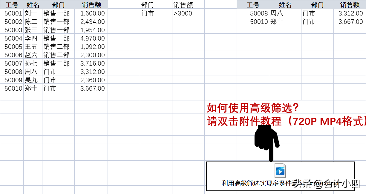 筛选功能是最常用到的,尤其是会计,按月,按供应商,各种基础条件进行筛选,今天分享的教材里,第一个是高级筛选的操作方法,含有视频教学操作。