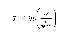 6、如果假设 alpha 等于 0.05,则需要计算等于 (1 - alpha) 或 95% 的标准正态分布曲线之下的面积。其面积值为 ±1.96。因此置信区间为: