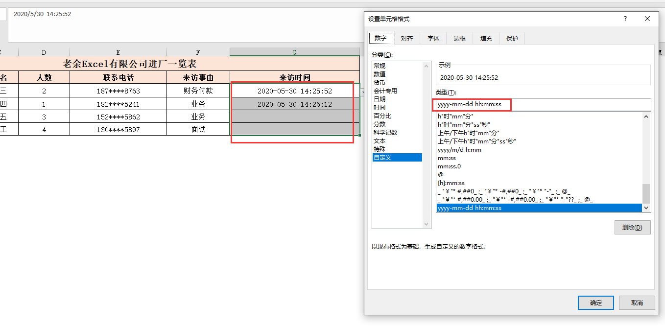 将单击格设置格式为:"yyyy-mm-dd hh:mm:ss".选择的时候下拉菜单即可完成对当前时间的记录