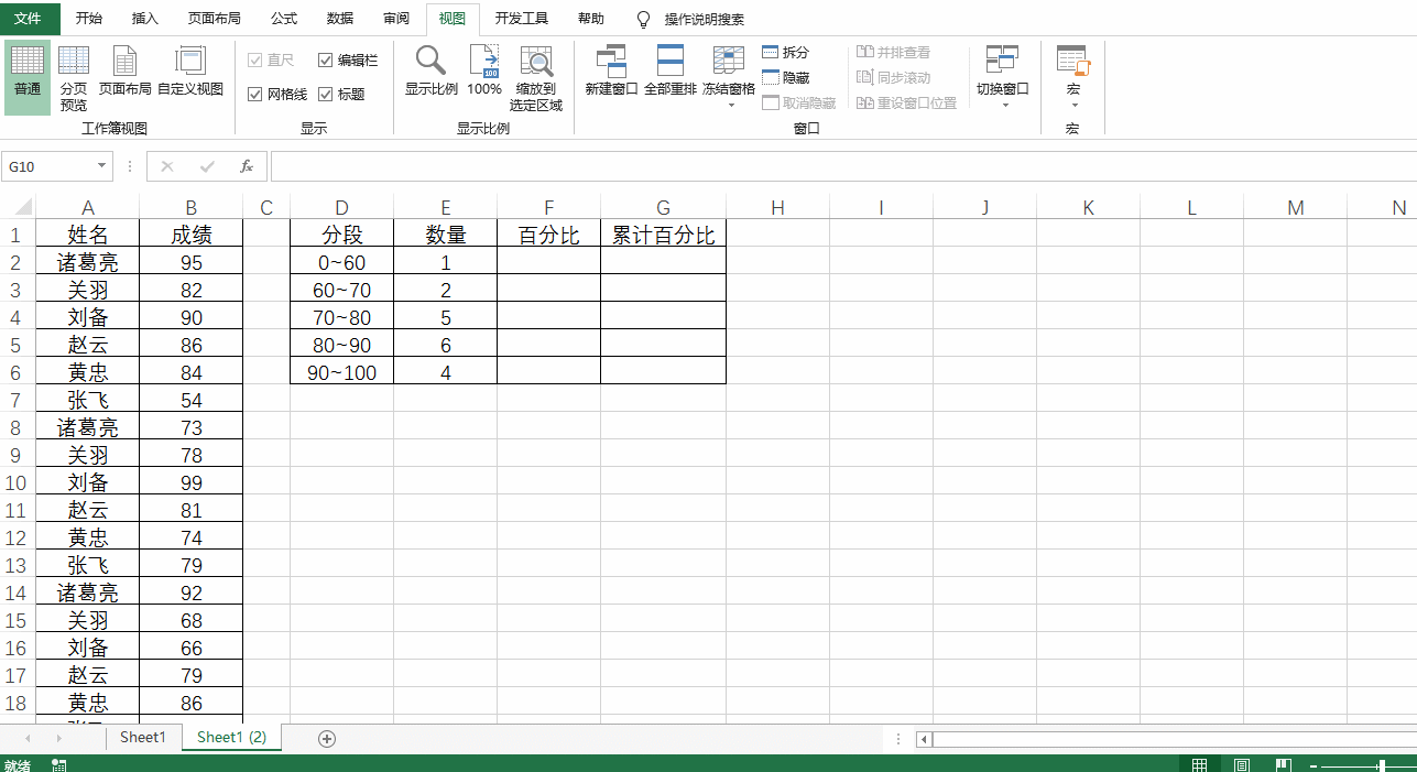 - 隐藏F列的数据,然后在累计百分比前插入一个0%的行。