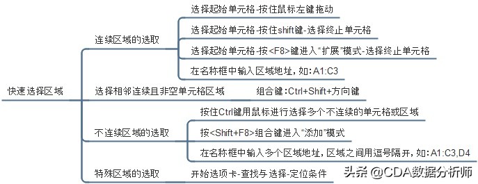 - 使用定位条件快速选取特定区域