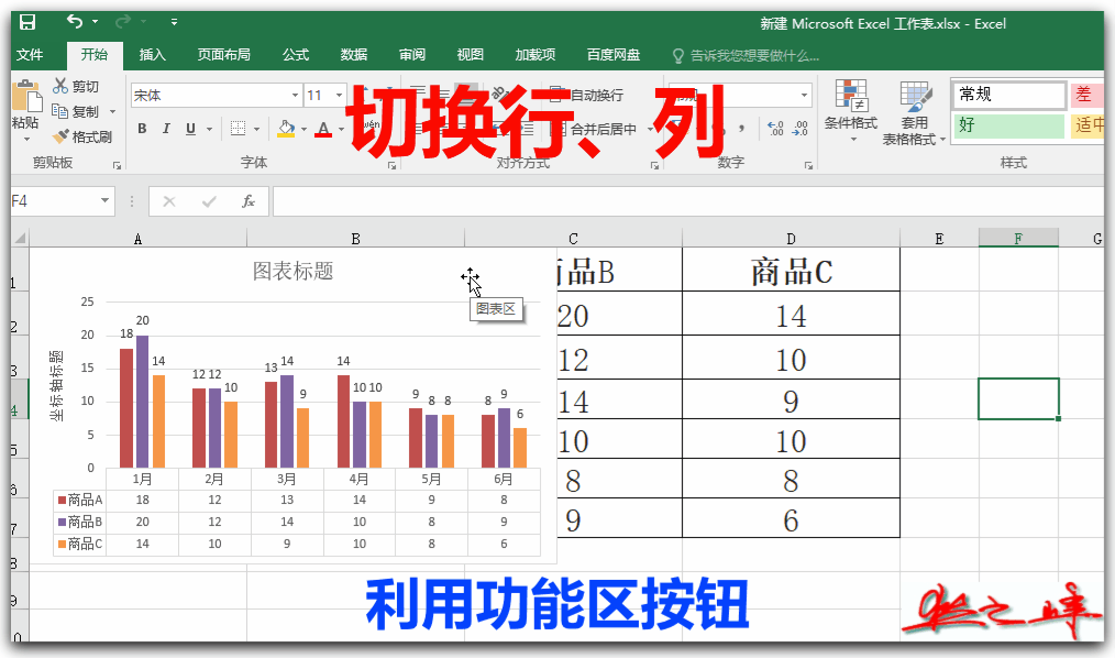 切换行、列就是互换数据源的行与列,在图表中将原有的行显示为列,将原有的列显示为行。