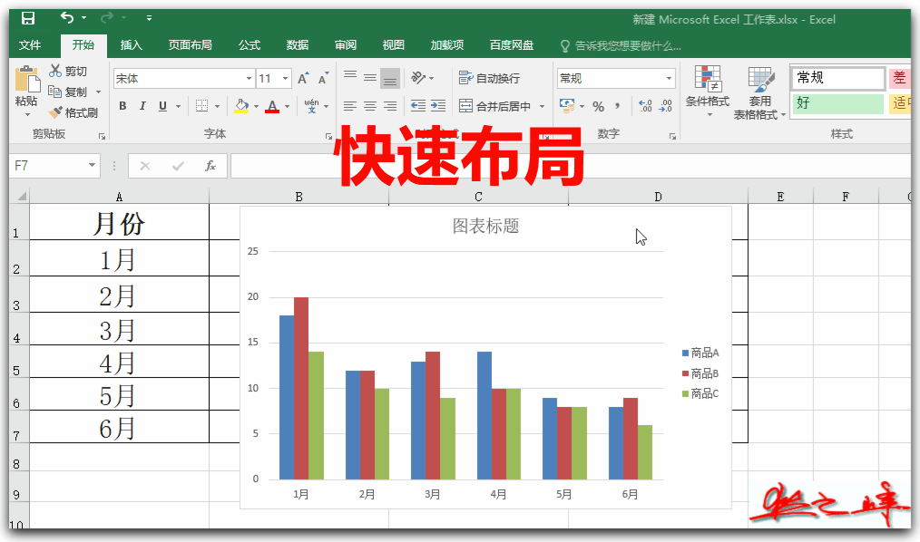点击选中图表,在出现的“图表工具”选项卡下面的“设计”选项卡上,点击“快速布局”按钮,在弹出的菜单中选择所需的布局即可。