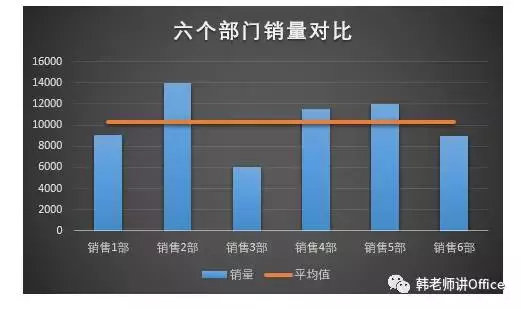 你是不是更喜欢后者?后者能清晰的看到那几个部门超出了平均销量,谁的业绩更明显,一目了然。