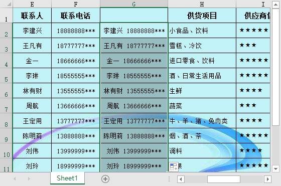 单元格中输入的内容如果是相邻数据区域中同一行的多个单元格内容所组成的字符串,在快速填充中也会依照这个规律,合并其他相应单元格来生成填充内容,如下左图和右图所示。