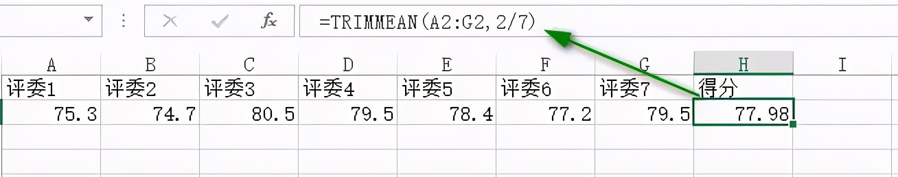 =TRIMMEAN(A2:G2,2/7)