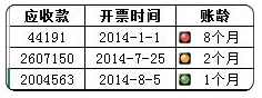 财务上对应收账款的回笼总是希望越快越好,对于未回笼的账款根据账龄长短用三色交通灯提醒: