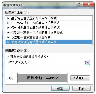 该条件格式的公式用于判断行号是否被2整除。如果公式返回结果为1,则对奇数行填充灰色底纹;如果公式返回结果为0,偶数行不填充。