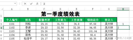 在H3单元格输入“1”,在H4单元格输入“2”。