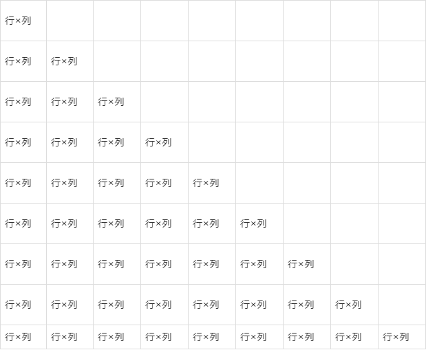 表示的是:当行数=1的时候,列数要从1到9循环一遍,循环完之后行数开始为2, 列数再次循环一遍,直到行数为9的时候,循环完毕