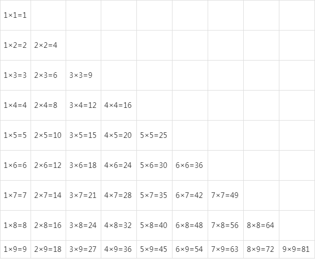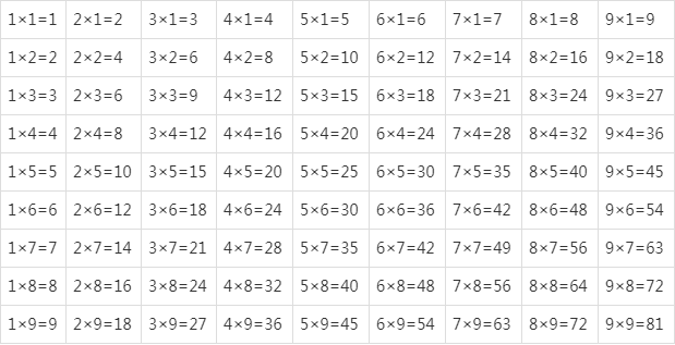 是由 列数×1、2、3……9