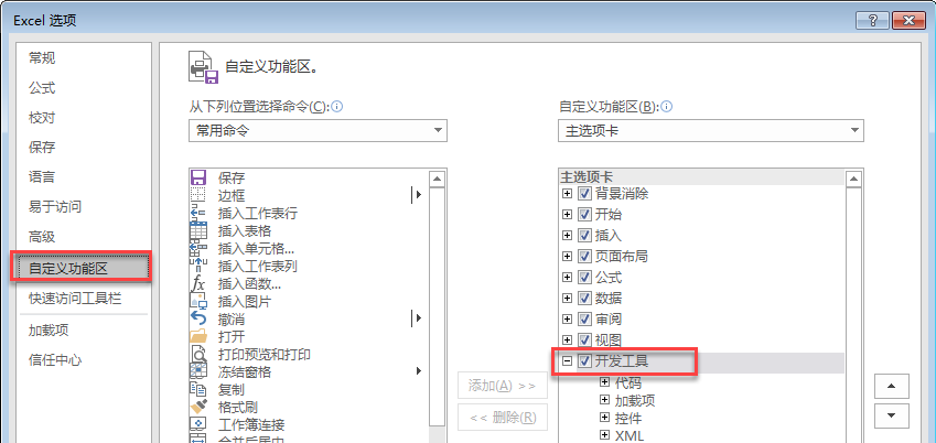 如果操作界面没有【开发工具】选项卡的,到Excel选项中设置。