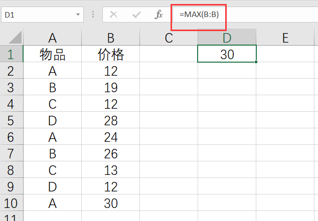 也就是求价格里面的最大值,我们在Excel里面,使用MAX函数轻松获得