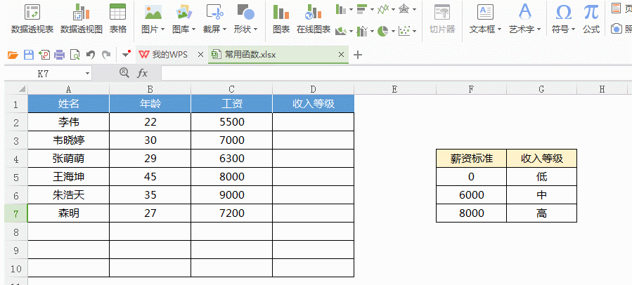 ▲模糊查找:将员工收入划分等级,工资低于6000属低收入,6000-8000中等收入,8000以上高收入。