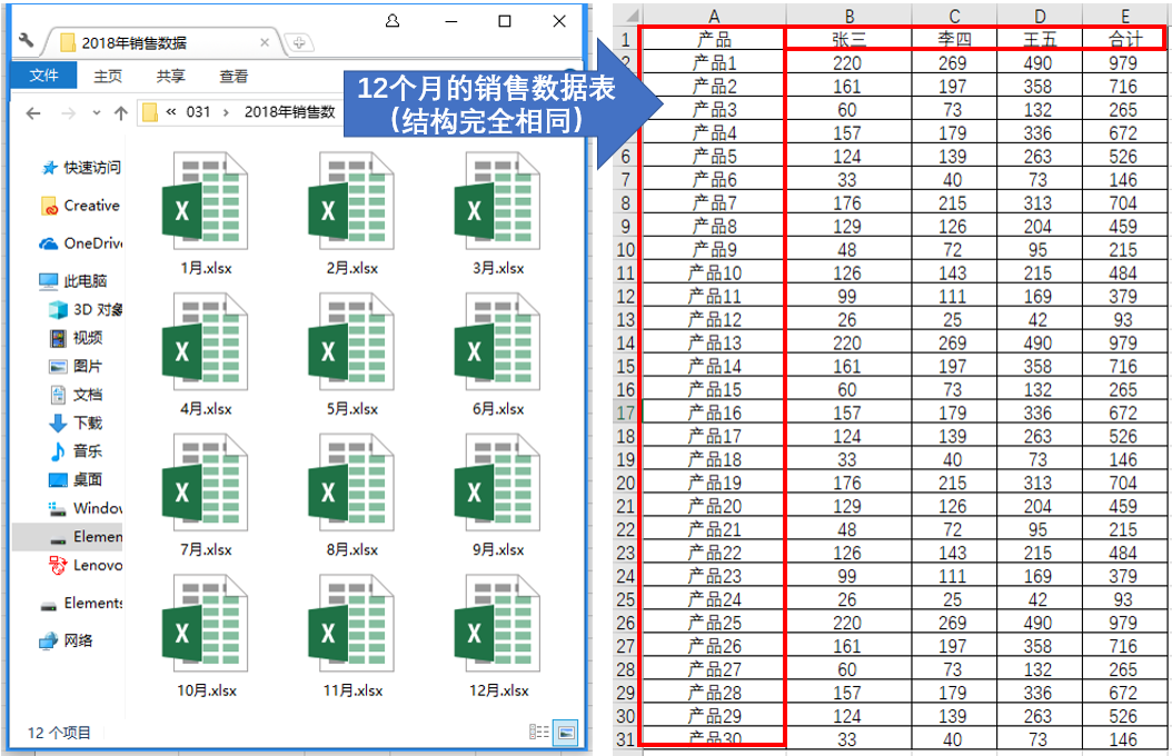 快到年底了,有小伙伴提出了如何快速将12个月的数据合并到一个工作表问题,比如将每个月不同销售员不同产品的销售数据汇总到一个工作表。今天我们就来分享一个快速将多个结构相同的工作簿数据汇总到一个工作表的方法,快速简单,一键搞定,提问的小伙伴速来围观!