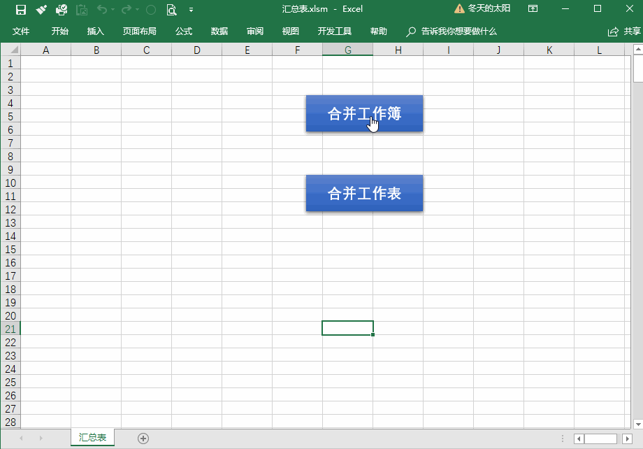 1、导入VBA模块:新建一个EXCEL汇总表,将sheet1更名为“汇总表”,删除其余的工作表,按ALT+F11 调出VBA 编辑器 →在工程窗口右击选择【导入文件】→选择VBA 模块文件(快速合并工作表和工作簿.bas)→关闭VBA 编辑器。导入后可以从【开发工具】→【宏】处看到“合并工作簿”和“合并工作表”两个宏。
