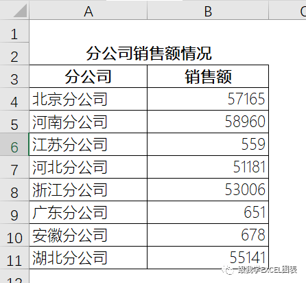 这个图例反映了真实的比例,但对于销售额小的几个分公司是很难做出对比的,这个时候我们就需要做些调整了,比如做成这个样子: