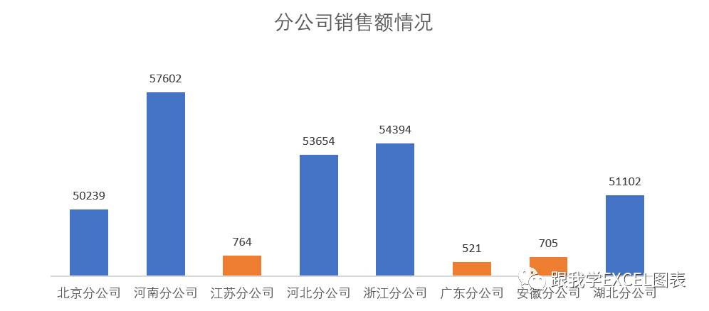 大家会发现,由于各个分公司经营情况不一样,有些可能是刚刚成立,刚开始有业务,有些可能是发生了一些特殊的事项,当年业绩下滑,也有可能是经营不善,反正种种原因,总会出现几家分公司业绩很少的情况,由于这些分公司实在是太小了,小到柱子都看不见了。