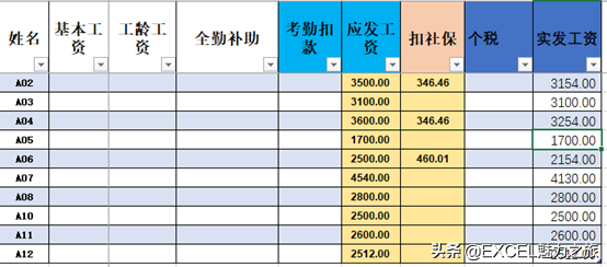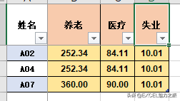基础表二为“扣社保明细表”,格式如下。截图二。